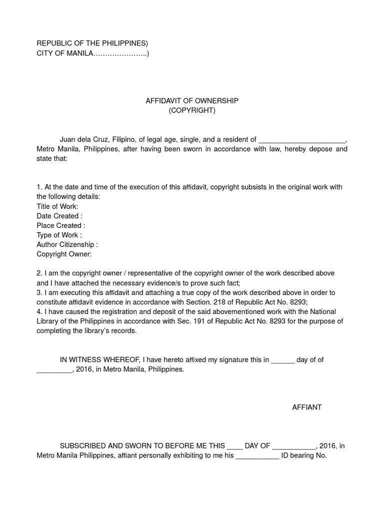 Choose From Affidavit Of Ownership Template Examples That Can Be Notarized As Ownership Declaration Or.
