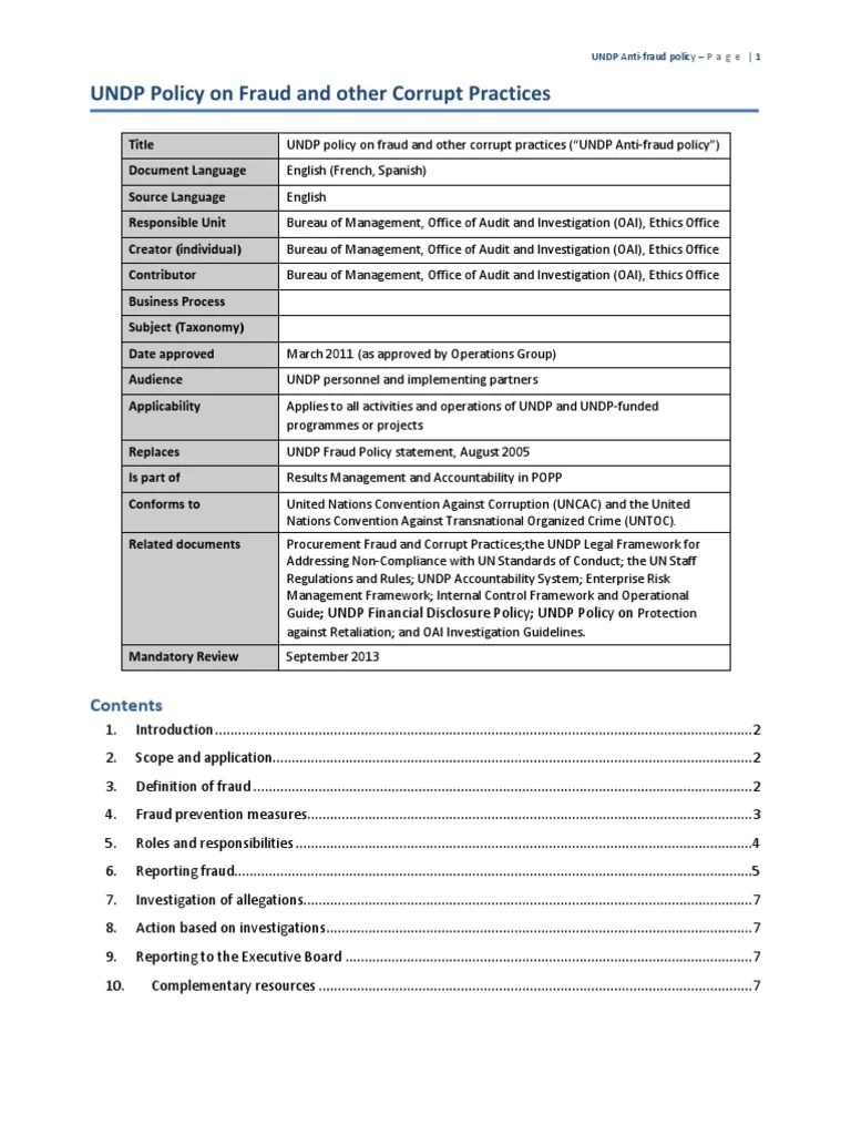 UNDP AntiFraud Policy English FINAL Fraud United Nations