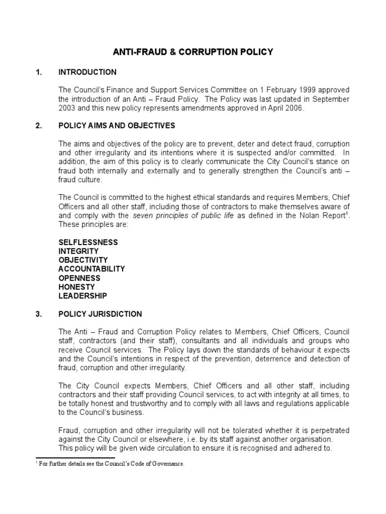 Web sample fraud policy introduction like all organizations, [name of nonprofit] is faced with risks from. Fraud prevention policy template 2. Fraud framework control policy template 3. Web introduction wrap complies with applicable legislation, including the fraud act 2006, the bribery act 2010 and with other regulatory. Web this policy aims to prevent and detect fraud, bribery and corruption.