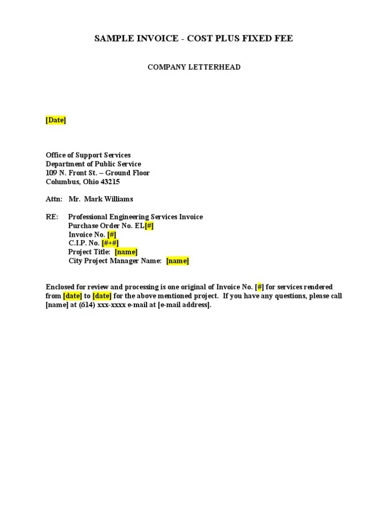 Cost Plus Fixed Fee Invoice Template.doc Business
