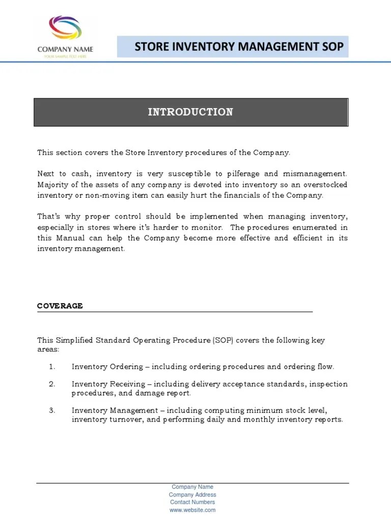 Web this sop covers the processes for warehouse and inventory management up to the point where unhcr inventory items. Web tips for creating your sop template. When creating your sop, you can either choose to make one from scratch or you may want to download an sop. Web in this article, we’ve researched and collected the top inventory management templates.