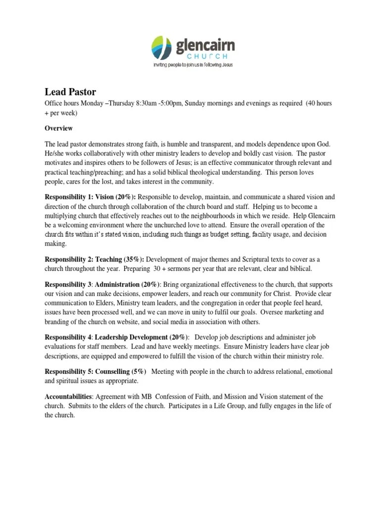 Church Pastor Job Ad/Description Template Google Docs, Word