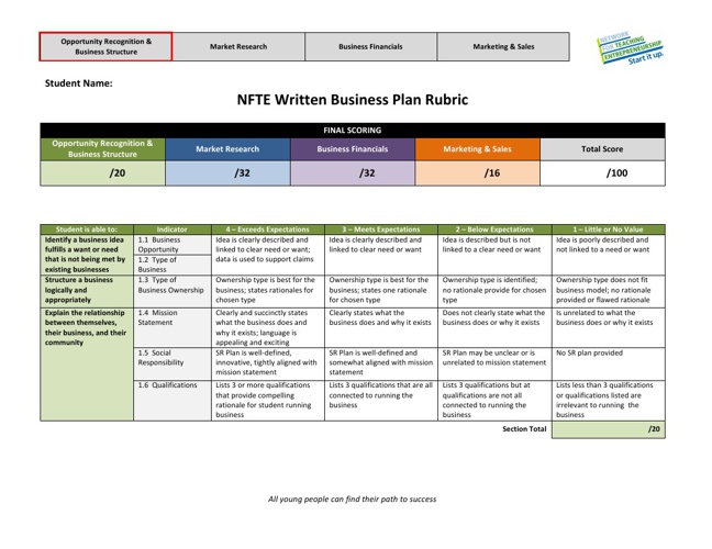 Nfte Written Business Plan Rubric Template printable pdf download