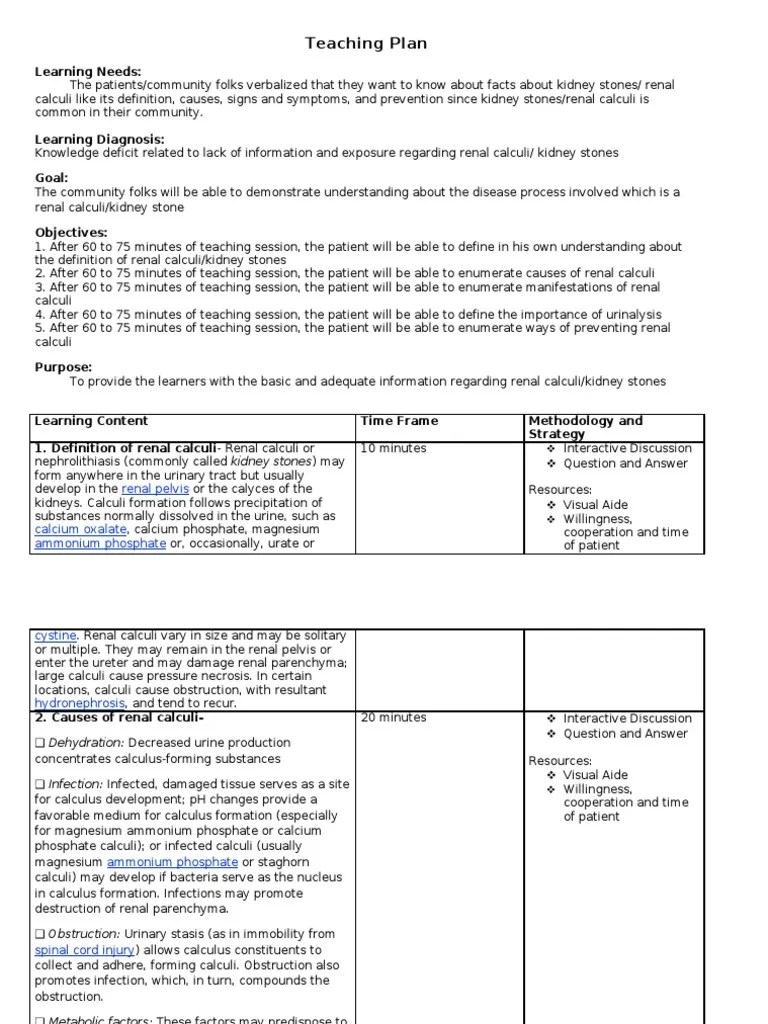 Teaching Planrenal calculi(2) Epidemiology Medicine